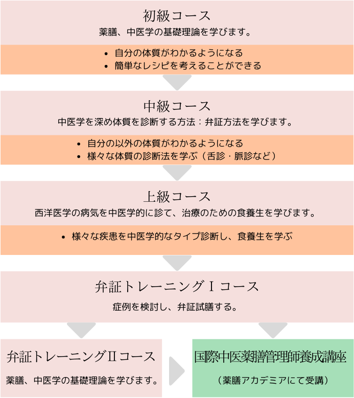 | 事業内容 | 薬膳・漢方等の中医学に関する養成講座及び通信講座などの教育事業 薬膳・漢方に関する食品及び飲料の製造並びに販売 各種ワークショップ、セミナー及びイベント等の企画並びに運営 |
